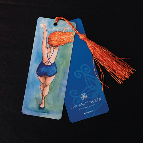Bokmärkena har tryck på fram- och baksida och har producerats på ett miljövänligt material som är avtorkningsbart. Levereras med en silkestofs i matchande färg.
