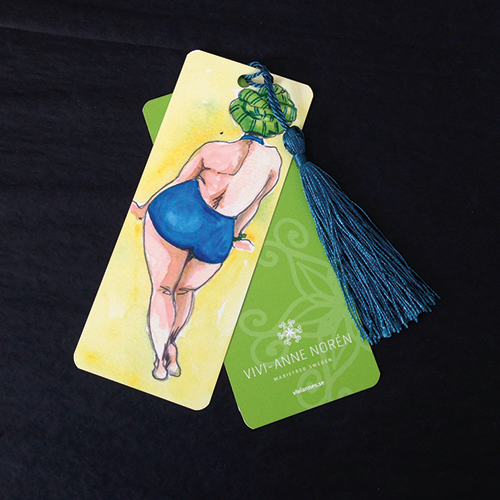 Bokmärkena har tryck på fram- och baksida och har producerats på ett miljövänligt material som är avtorkningsbart. Levereras med en silkestofs i matchande färg.