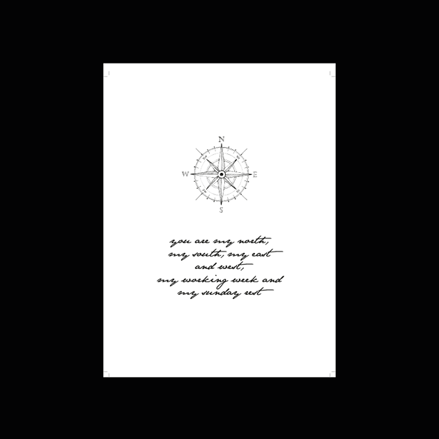 Texten; "You are my Noth, south, east and west, my working week and my sunday rest"